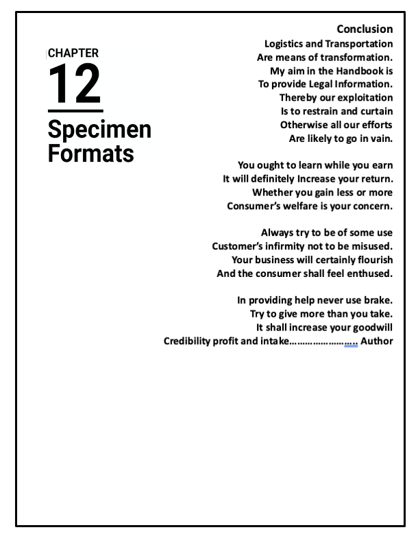 Indian Commercial Transport Handbook: Five Minute Transporter is the essence of my three-decades-long experiments with Logistics, a sector which is the backbone of any economy but unfortunately, it is the most unorganized and neglected. Most of the stakeholders are blatantly ignorant about the laws that govern this trade making them an easy prone to exploitation. In view to provide easy and informative knowledge, I endure providing comprehensive information in abridged form. The book comprises of 12 chapters on Buying a Commercial Vehicle; Finance; Buying an Insurance; the statutory documents required after purchase; various Licenses and Registrations; acquaintance with the basics of operation costs of business; valid documentation in case of loss due to accident; the process for effective & safe handling of a third-party liability claim; the situation after the vehicle requisition by the government; detailed safeguard at the time of sale of commercial vehicle and the Dos and Don’ts to be followed at the time of selling a commercial vehicle as scrap have been discussed respectively.